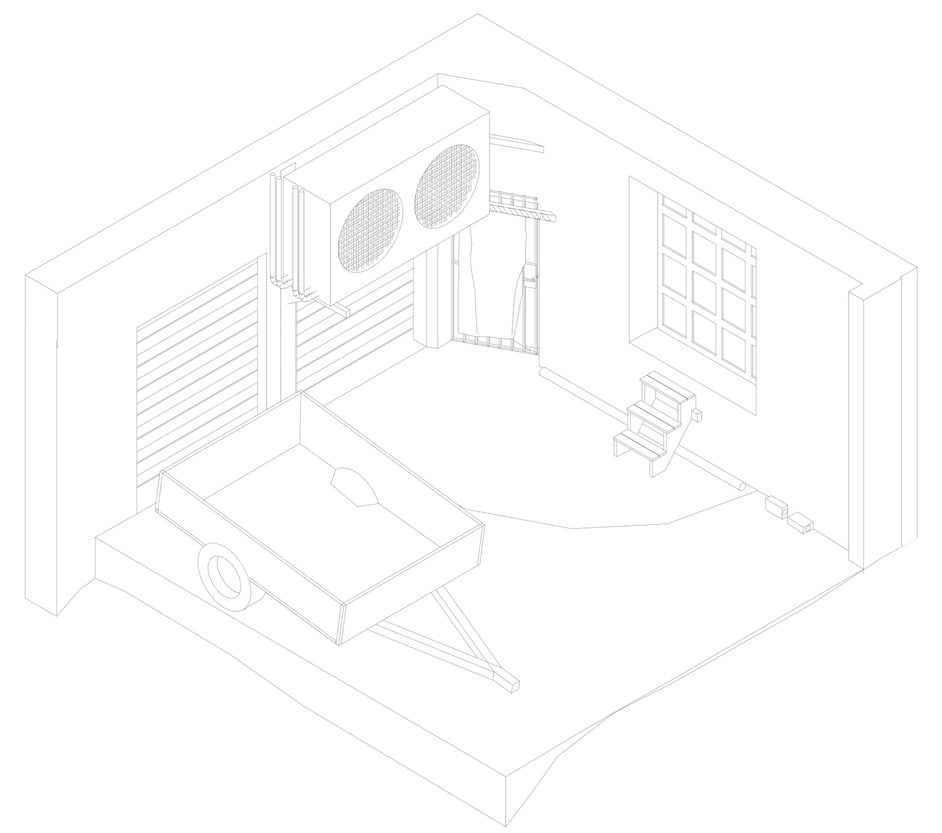 Odd situations, overgrown gardens, post industrial sites. I photograph them, pin them up in the studio and start drawing them as axonometric drawings. What they all have in common is that they are a kind of backside. They all contain stuff we dont want to associate ourself with. That is rat-traps, trash, heat pumps- obsolete technology etc. This became an entrance into the thinking of what we hide, and how we curate for the conformist living.